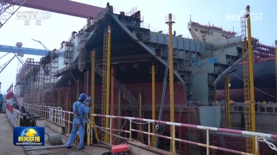 今年,中國(guó)船舶集團(tuán)完工交船量全球占比18.6%,位居全球造船企業(yè)首位。全球最大超大型集裝箱船、8萬(wàn)方江海聯(lián)運(yùn)LNG船、全球首艘M350型海上浮式儲(chǔ)卸油船等一批高端船型順利交付。