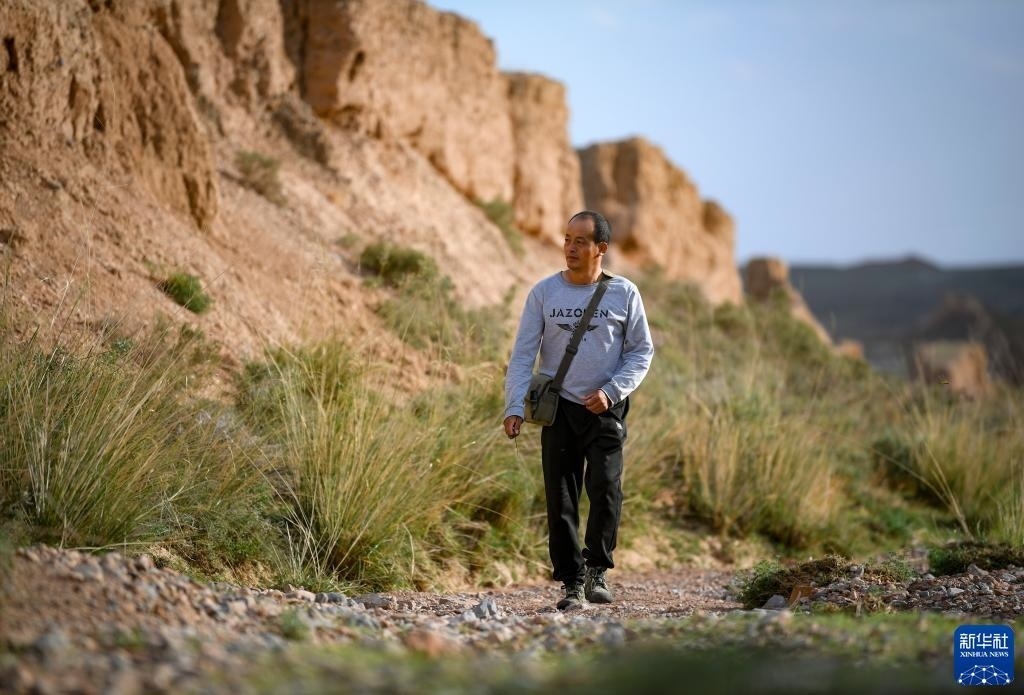 今年42歲的董海寧,從小在長城腳下長大。2016年,董海寧被聘為寧夏永寧縣長城保護(hù)員,兩年后又被聘為內(nèi)蒙古阿拉善左旗的長城保護(hù)員。