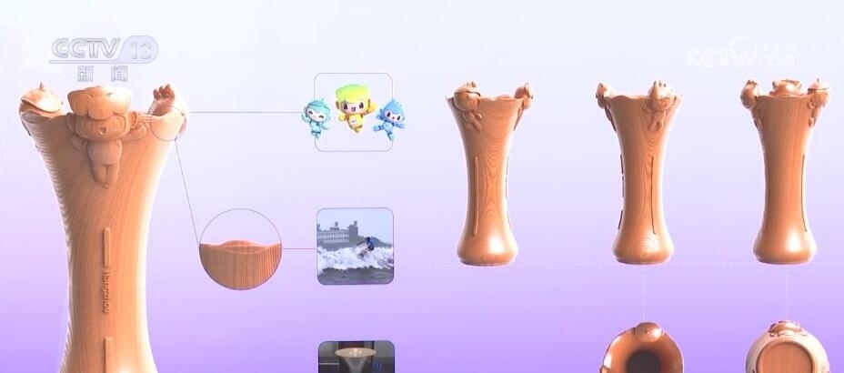 頒獎(jiǎng)托盤設(shè)計(jì)靈感則來源于微風(fēng)中波動(dòng)的西湖水面,結(jié)合本屆亞運(yùn)會(huì)核心圖形“潤澤”中的飄逸絲帶意向,整體給人流動(dòng)之感。