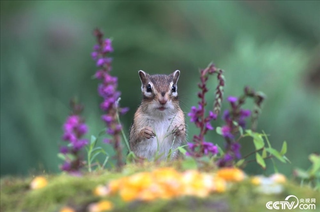 黑龍江大慶:花栗鼠公園內(nèi)嬉戲覓食。