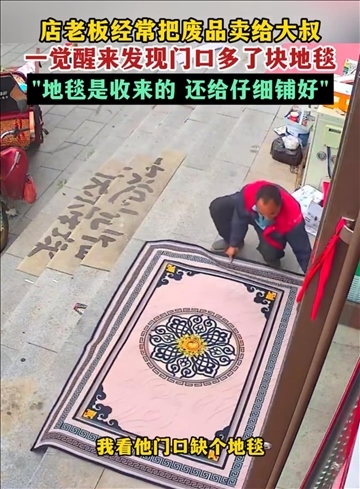 ·收廢品大叔為感謝店老板在其店門口鋪了塊地毯,網(wǎng)友:這份雙向奔赴的善意真暖!