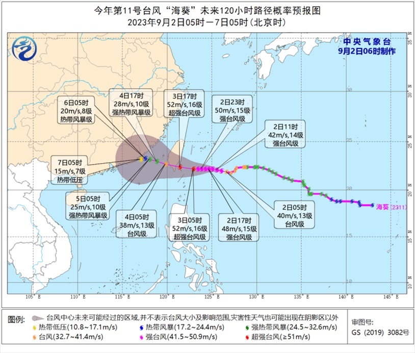 預(yù)計(jì),“??睂⒁悦啃r(shí)15-20公里的速度向偏西方向移動(dòng),強(qiáng)度逐漸增強(qiáng),最強(qiáng)可達(dá)強(qiáng)臺(tái)風(fēng)級(jí)或超強(qiáng)臺(tái)風(fēng)級(jí)(50-55米/秒,15-16級(jí)),將于3日傍晚前后在臺(tái)灣島東南部沿海登陸,然后穿過臺(tái)灣島,逐漸向福建南部到廣東東部沿??拷?/p>