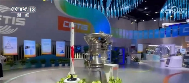 總臺記者 王豐:這片區(qū)域是綜合展的一個成就展的專題,這里集中展示了我國在服務(wù)業(yè)擴(kuò)大開放和服務(wù)貿(mào)易創(chuàng)新發(fā)展方面所取得的一系列成就。比如說這個,這是我國民營企業(yè)藍(lán)箭航天自主研發(fā)的朱雀二號火箭,旁邊是自主研發(fā)的天鵲發(fā)動機(jī)。今年7月12日,朱雀二號成功發(fā)射升空,是世界上首款將載荷送入預(yù)定軌道的液氧甲烷火箭。