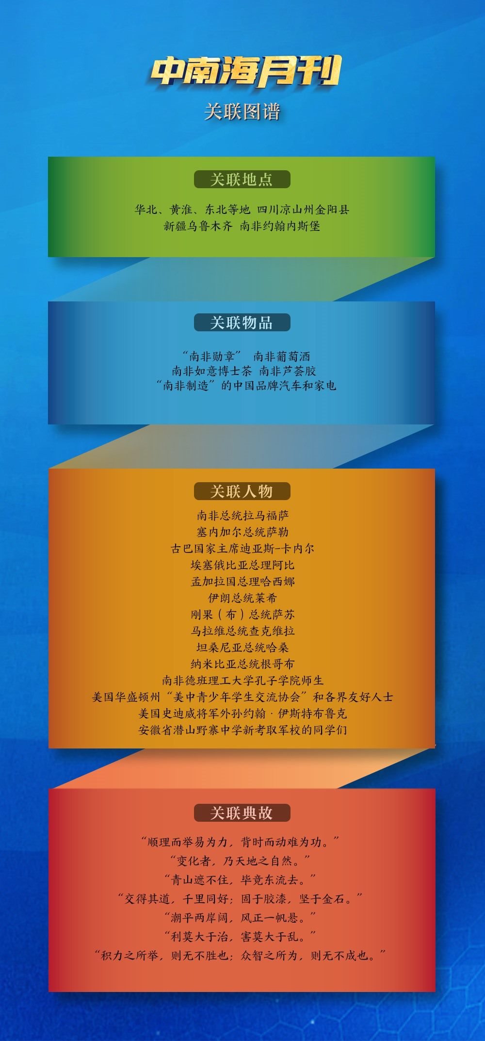 關(guān)聯(lián)物品“南非勛章”吸引了世界目光。8月22日,在南非比勒陀利亞總統(tǒng)府,拉馬福薩總統(tǒng)捧起一枚“南非勛章”,鄭重為習(xí)近平主席佩戴上。這是南非授予重要友好國家元首的最高級別勛章和最高榮譽(yù),也成為兩國“同志加兄弟”特殊友好關(guān)系的有力見證。