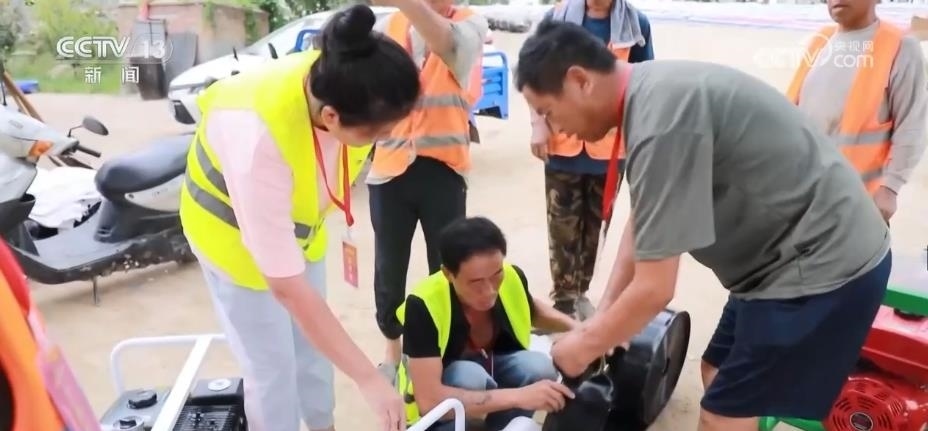 村里有5個蓄水坑,郭義停緊急協(xié)調(diào)多臺排水設(shè)備,將蓄水坑排空,分擔(dān)降雨壓力。