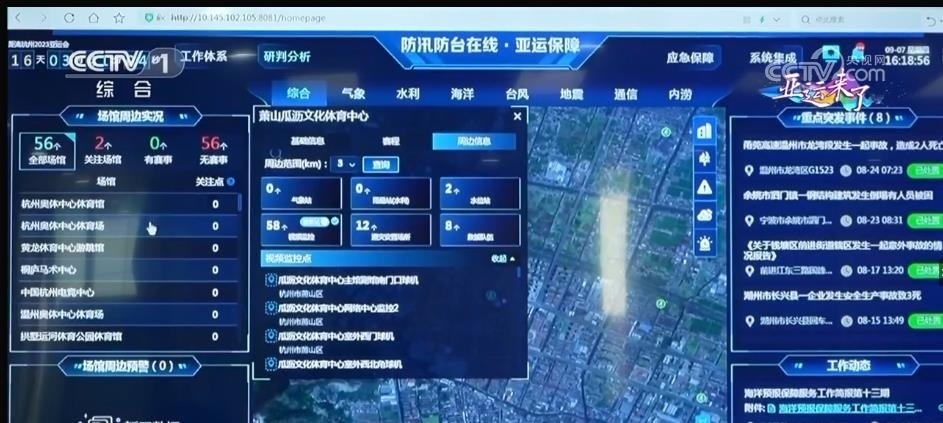 此外,杭州亞運(yùn)保障協(xié)調(diào)組還建立了統(tǒng)一的亞運(yùn)保障協(xié)調(diào)指揮平臺。56個(gè)場館周邊風(fēng)、雨、水、空氣質(zhì)量等數(shù)據(jù)實(shí)現(xiàn)實(shí)時(shí)在線,地質(zhì)災(zāi)害、森林防火、潮浪等信息實(shí)現(xiàn)自動預(yù)警。亞運(yùn)村消防站、亞運(yùn)應(yīng)急用電保障系統(tǒng)也相繼投入使用。