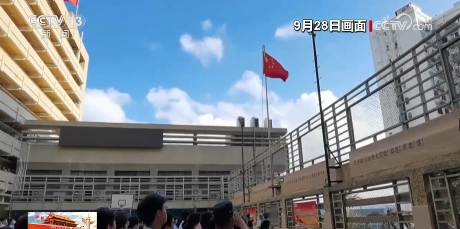 央視網(wǎng)消息:為慶祝中華人民共和國成立74周年,9月28日,香港培僑中學(xué)邀請解放軍駐香港部隊三軍儀仗隊來校為全體師生舉行升國旗儀式。培僑中學(xué)是新中國成立后首批升起五星紅旗的香港學(xué)校之一,從那時起,升國旗的儀式在培僑中學(xué)代代相傳,迄今已經(jīng)延續(xù)了74年。