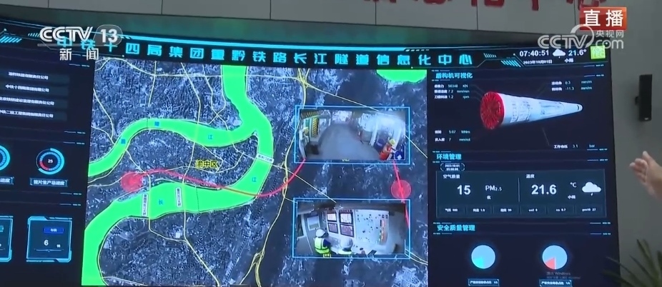 總臺記者 李洪淼:以前修建隧道需要爆破施工,工人在地下需要完成人工打眼、裝炸藥、爆破、出渣等工作,還需要進(jìn)行后續(xù)的二襯等工序才可以完成隧道建設(shè)。而如今,使用盾構(gòu)機(jī)來修建隧道,不僅可以讓隧道建設(shè)的效率大大提升,還能改善工人們的工作環(huán)境,安全性也有保障。智慧化的施工監(jiān)測平臺可以對洞內(nèi)的施工一目了然。