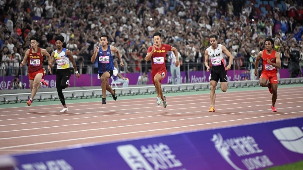 率先進行的女子100米決賽中,面對曾經在今年亞錦賽上戰(zhàn)勝過自己的新加坡名將佩雷拉,扎著“哪吒頭”的葛曼棋頂住壓力,憑借強有力的沖刺以11秒23率先撞線。隨后的男子決賽,名將謝震業(yè)戰(zhàn)勝了對手,也戰(zhàn)勝了自己。9秒97的奪冠成績是他繼2018年之后,時隔5年再次突破10秒大關。雖然2.4米每秒的順風風速讓他的成績不能被計為達標巴黎奧運會的有效成績,但謝震業(yè)賽后表示,雖然超了風速,但是成績就在這里,戰(zhàn)勝了自己心里就沒有遺憾。
