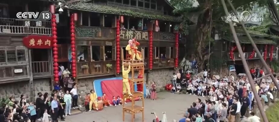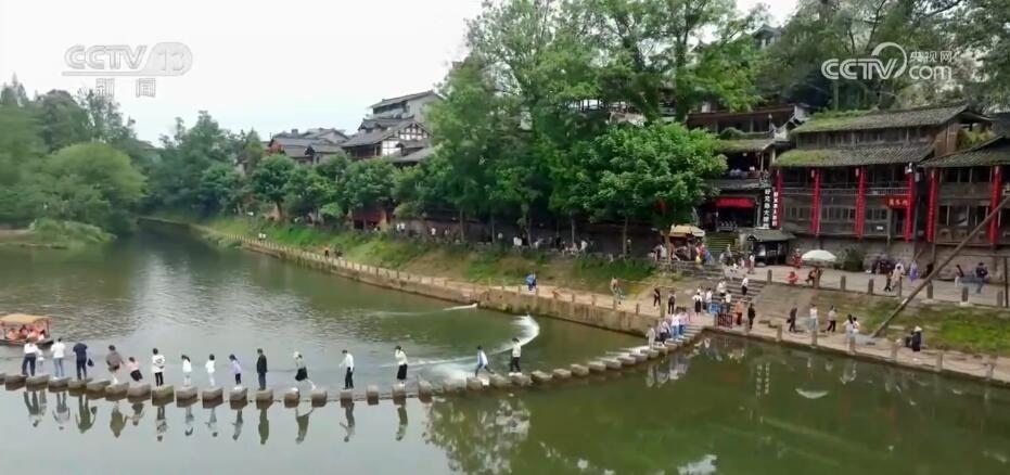 在四川洪雅縣的柳江古鎮(zhèn),當(dāng)?shù)赝瞥鰧?shí)景演出、經(jīng)典誦讀、非遺巡演等多項(xiàng)活動(dòng)。游客們漫步于山水如畫的詩意古鎮(zhèn)中,觀看水上實(shí)景演出,感受非遺民俗魅力,歡度假期。