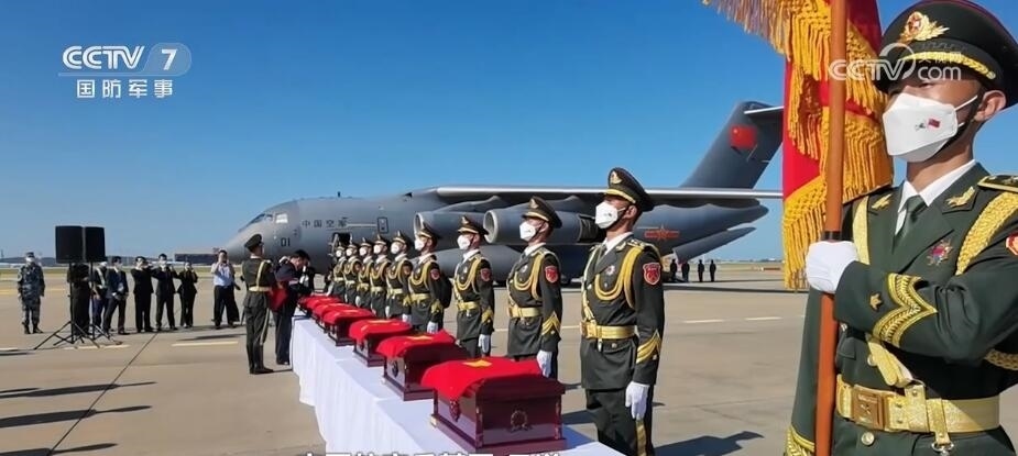 空軍航空兵某團(tuán) 孟洋:當(dāng)時在儀式的現(xiàn)場,我們機(jī)組成員是列隊在飛機(jī)的后艙位置,準(zhǔn)備迎接烈士遺骸上飛機(jī)。當(dāng)儀仗隊隊員緩緩地將棺槨搬上飛機(jī)的那一刻,我看著一面面國旗覆蓋在棺槨上,直到那一刻,我才更加深刻地理解我們國旗的顏色是由無數(shù)革命先烈鮮血染成的。