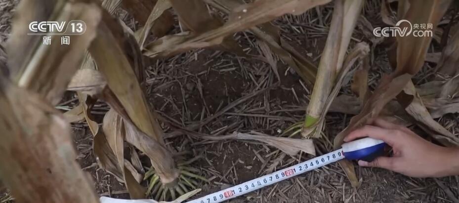 我們扒開(kāi)田里的玉米看一下,可以看到玉米色澤金黃,而且顆粒飽滿(mǎn),這說(shuō)明玉米的品質(zhì)是非常好的。除此之外,這個(gè)玉米品種還有一個(gè)特點(diǎn)就是耐密。一般的玉米株距在28—30cm,我們拿尺子測(cè)量一下,玉米株距大約在24cm,相對(duì)一般玉米比較小,這樣每畝地種植的玉米株數(shù)更多,產(chǎn)量也就相對(duì)較高。