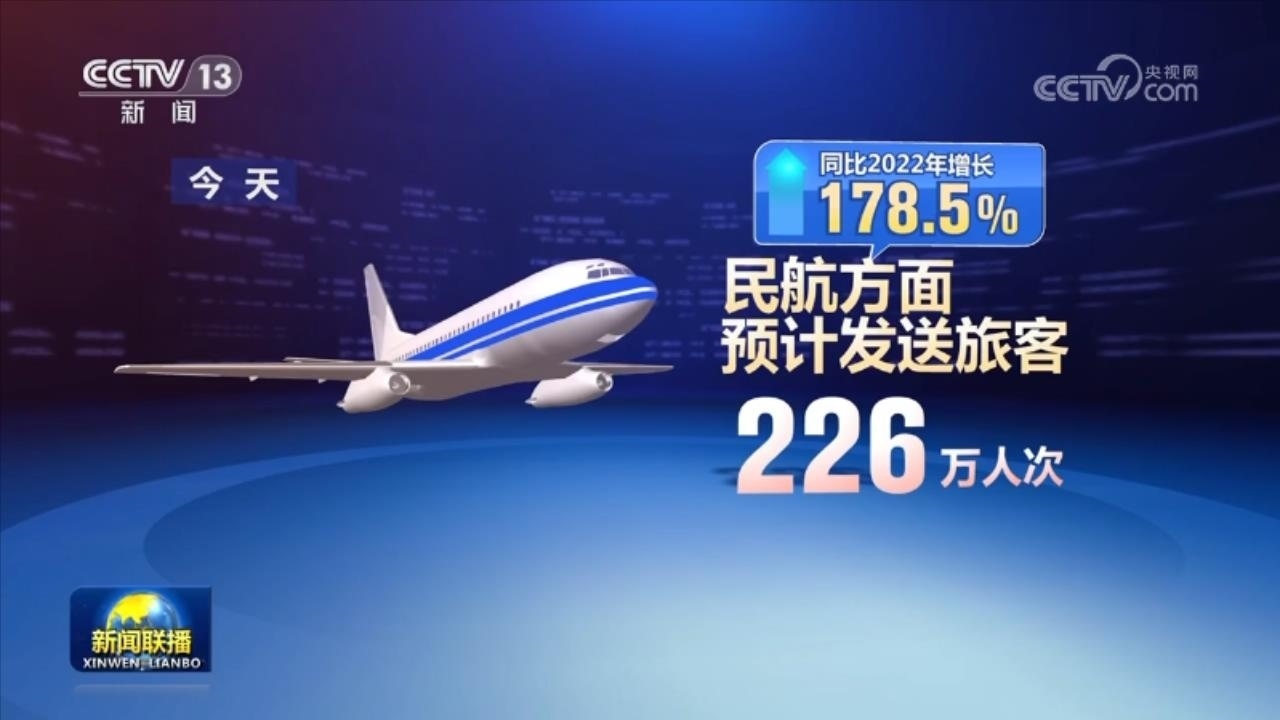 民航方面,今天預(yù)計發(fā)送旅客226萬人次,同比2022年增長178.5%。全國水路預(yù)計發(fā)送旅客115萬人次,同比2022年增長164.62%。
