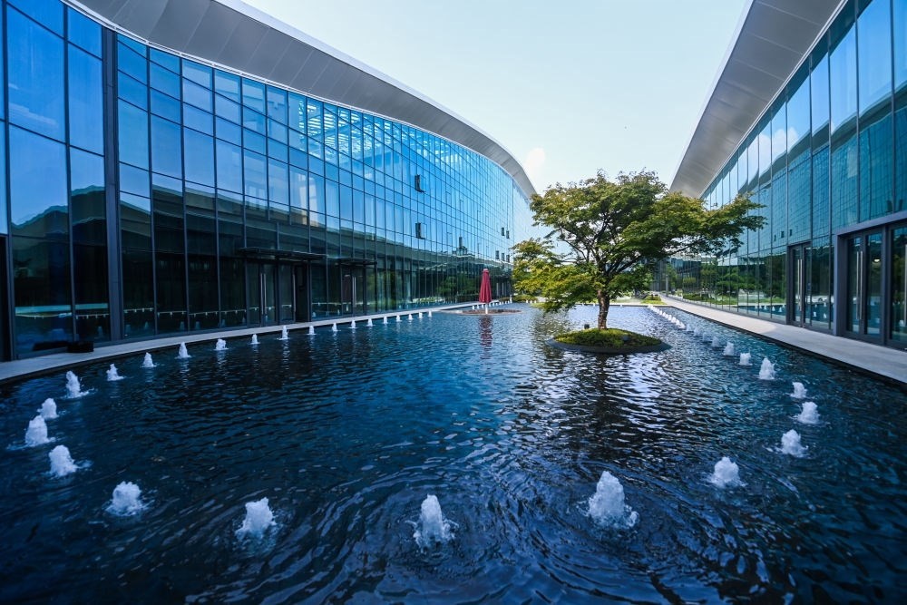 這是杭州富陽水上運動中心的中庭花園(8月24日攝),水池中的水來自于循環(huán)利用的雨水。新華社記者 徐昱 攝