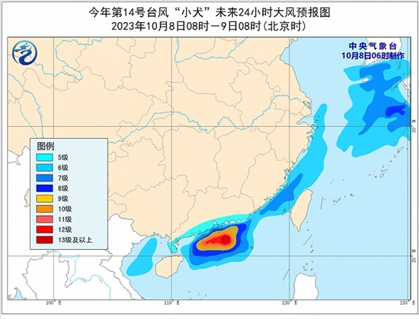 昨日,“小犬”給浙江東部、福建南部、廣東東部等地帶來明顯風雨,廣東揭陽、汕頭局地大暴雨。預計未來24小時,受冷空氣和“小犬”共同影響,臺灣島東北部、廣東中部沿海、珠江口附近將有大到暴雨、局地大暴雨(100-150毫米);東海大部、臺灣海峽、南海北部、北部灣以及浙江沿海、福建沿海、廣東沿海將有6-8級、陣風9-10級的大風,其中廣東沿海、南海北部的部分海域?qū)⒂?-11級、陣風12-13級的大風,“小犬”中心經(jīng)過的附近海面風力有12-14級,陣風15-16級。