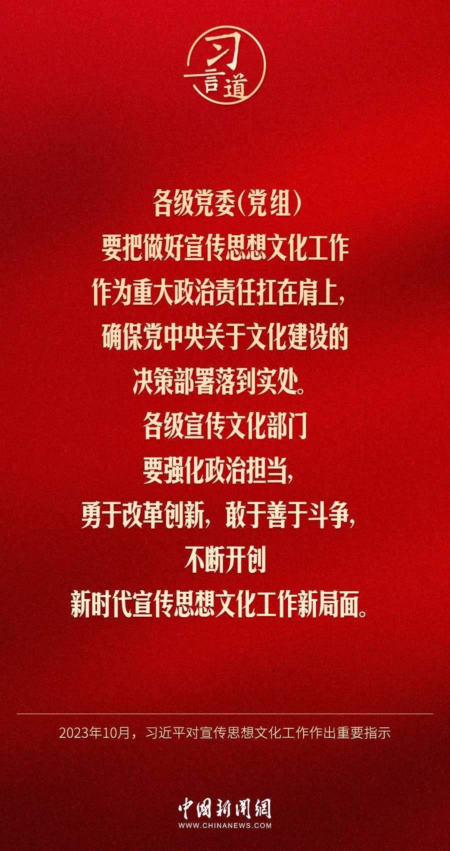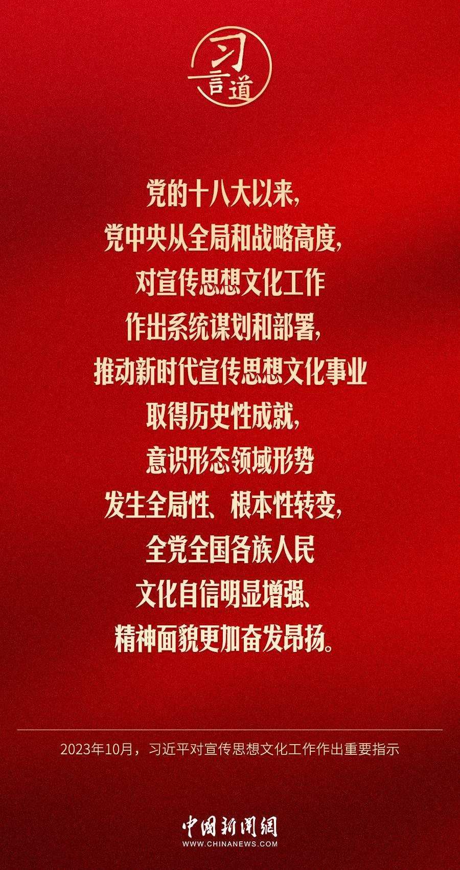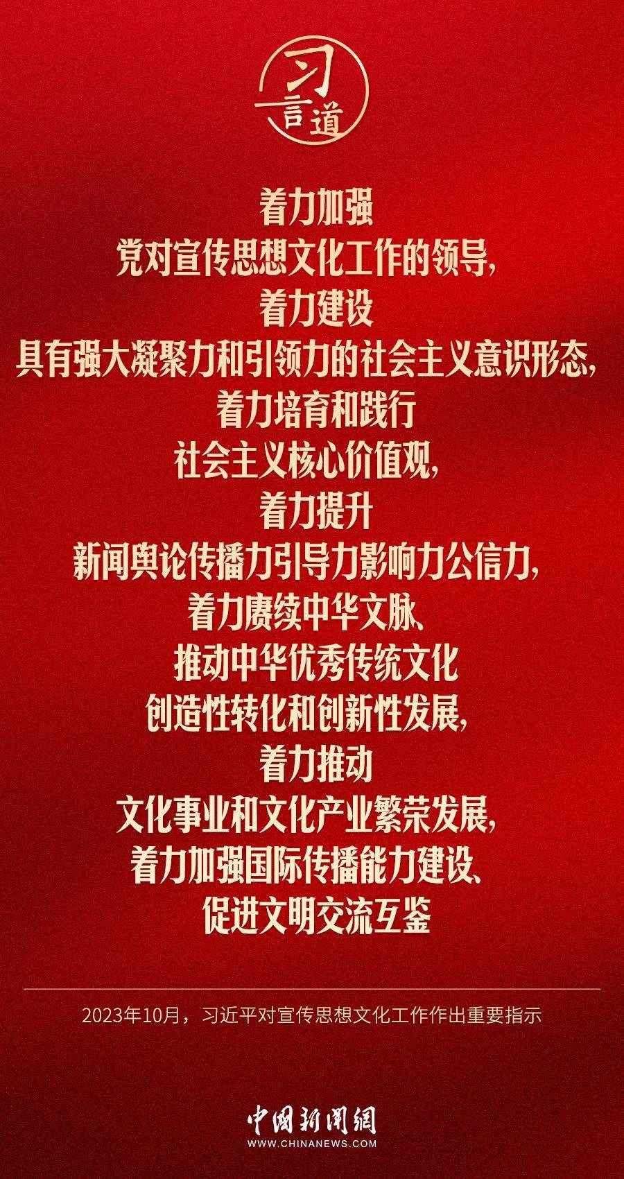 中共中央總書(shū)記、國(guó)家主席、中央軍委主席習(xí)近平近日對(duì)宣傳思想文化工作作出重要指示,他指出——
