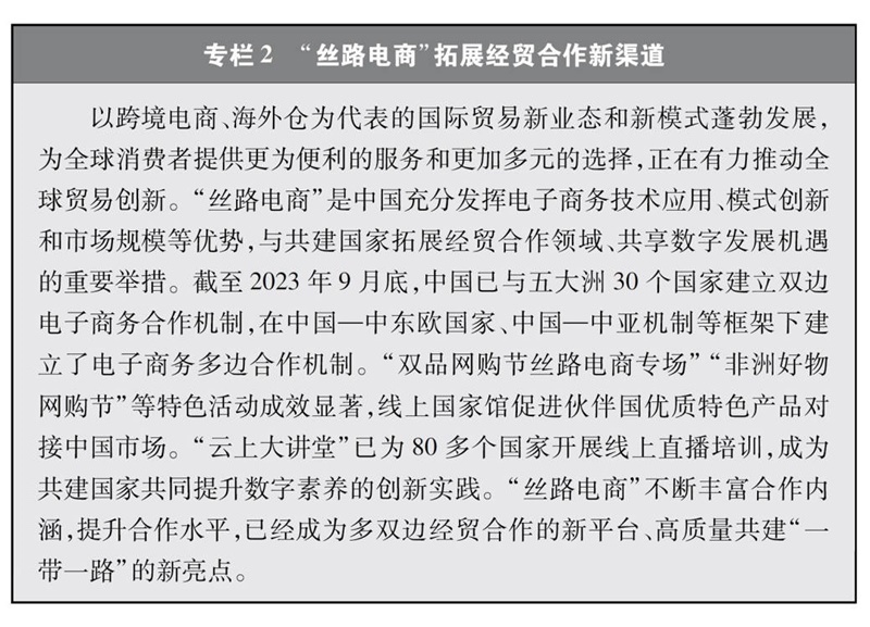 “數(shù)字絲綢之路”建設(shè)亮點紛呈。共建國家加強(qiáng)數(shù)字領(lǐng)域的規(guī)則標(biāo)準(zhǔn)聯(lián)通,推動區(qū)域性數(shù)字政策協(xié)調(diào),攜手打造開放、公平、公正、非歧視的數(shù)字發(fā)展環(huán)境。截至2022年底,中國已與17個國家簽署“數(shù)字絲綢之路”合作諒解備忘錄,與30個國家簽署電子商務(wù)合作諒解備忘錄,與18個國家和地區(qū)簽署《關(guān)于加強(qiáng)數(shù)字經(jīng)濟(jì)領(lǐng)域投資合作的諒解備忘錄》,提出并推動達(dá)成《全球數(shù)據(jù)安全倡議》《“一帶一路”數(shù)字經(jīng)濟(jì)國際合作倡議》《中國-東盟關(guān)于建立數(shù)字經(jīng)濟(jì)合作伙伴關(guān)系的倡議》《中阿數(shù)據(jù)安全合作倡議》《“中國+中亞五國”數(shù)據(jù)安全合作倡議》《金磚國家數(shù)字經(jīng)濟(jì)伙伴關(guān)系框架》等合作倡議,牽頭制定《跨境電商標(biāo)準(zhǔn)框架》。積極推進(jìn)數(shù)字基礎(chǔ)設(shè)施互聯(lián)互通,加快建設(shè)數(shù)字交通走廊,多條國際海底光纜建設(shè)取得積極進(jìn)展,構(gòu)建起130套跨境陸纜系統(tǒng),廣泛建設(shè)5G基站、數(shù)據(jù)中心、云計算中心、智慧城市等,對傳統(tǒng)基礎(chǔ)設(shè)施如港口、鐵路、道路、能源、水利等進(jìn)行數(shù)字化升級改造,“中國-東盟信息港”、“數(shù)字化中歐班列”、中阿網(wǎng)上絲綢之路等重點項目全面推進(jìn),“數(shù)字絲路地球大數(shù)據(jù)平臺”實現(xiàn)多語言數(shù)據(jù)共享。空間信息走廊建設(shè)成效顯著,中國已建成連接南亞、非洲、歐洲和美洲的衛(wèi)星電信港,中巴(西)地球資源系列遙感衛(wèi)星數(shù)據(jù)廣泛應(yīng)用于多個國家和領(lǐng)域,北斗三號全球衛(wèi)星導(dǎo)航系統(tǒng)為中歐班列、船舶海運等領(lǐng)域提供全面服務(wù);中國與多個共建國家和地區(qū)共同研制和發(fā)射通信或遙感衛(wèi)星、建設(shè)衛(wèi)星地面接收站等空間基礎(chǔ)設(shè)施,依托聯(lián)合國空間科技教育亞太區(qū)域中心(中國)為共建國家培養(yǎng)大量航天人才,積極共建中海聯(lián)合月球和深空探測中心、中阿空間碎片聯(lián)合觀測中心、瀾湄對地觀測數(shù)據(jù)合作中心、中國東盟衛(wèi)星應(yīng)用信息中心、中非衛(wèi)星遙感應(yīng)用合作中心,利用高分衛(wèi)星16米數(shù)據(jù)共享服務(wù)平臺、“一帶一路”典型氣象災(zāi)害分析及預(yù)警平臺、自然資源衛(wèi)星遙感云服務(wù)平臺等服務(wù)于更多共建國家。