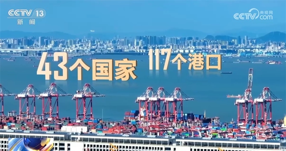 向大海,這是2013年時中國與共建“一帶一路”國家間的水運航線。十年間,共建“一帶一路”國家間的水運航線數(shù)量翻了一番,新增航線達到了1344條,穿梭其中的貨船增加150%?!敖z路海運”航線已通達全球43個國家的117個港口,織出了一張聯(lián)通世界的貿(mào)易流動網(wǎng)絡。