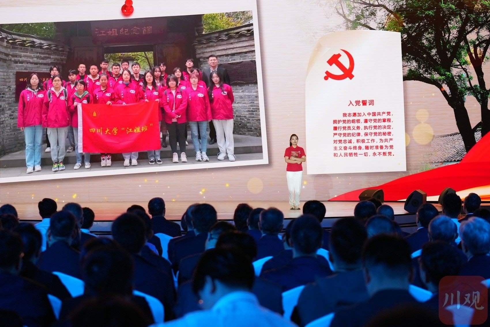 在 “錦水含章”篇章中,以歌曲《紅梅贊》引入,《江姐在川大》編劇冉詩媛、四川大學“江姐班”學生代表張鈺、“江姐紀念館”設計者段禹農、第49屆南丁格爾獎獲得者蔣艷和四川大學三星堆遺址考古隊隊長黎海超等結合工作學習實踐,動情講述傳承江姐精神矢志報國、援外抗疫展現(xiàn)大愛、創(chuàng)新賦能文博考古故事,生動詮釋紅色傳承、文脈賡續(xù)、人民至上。