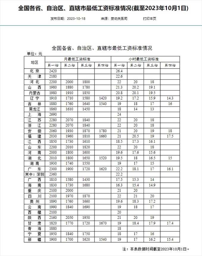 ·全國打工人最低工資標(biāo)準(zhǔn):京滬最高,河南等16省份第一檔月薪不低于2000元。