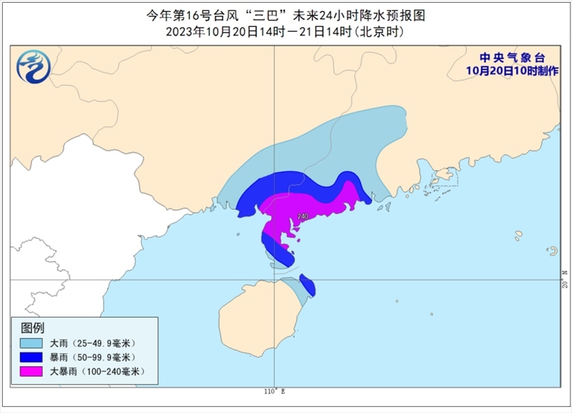 央視網(wǎng)消息:中央氣象臺10月20日10時繼續(xù)發(fā)布臺風藍色預警:
