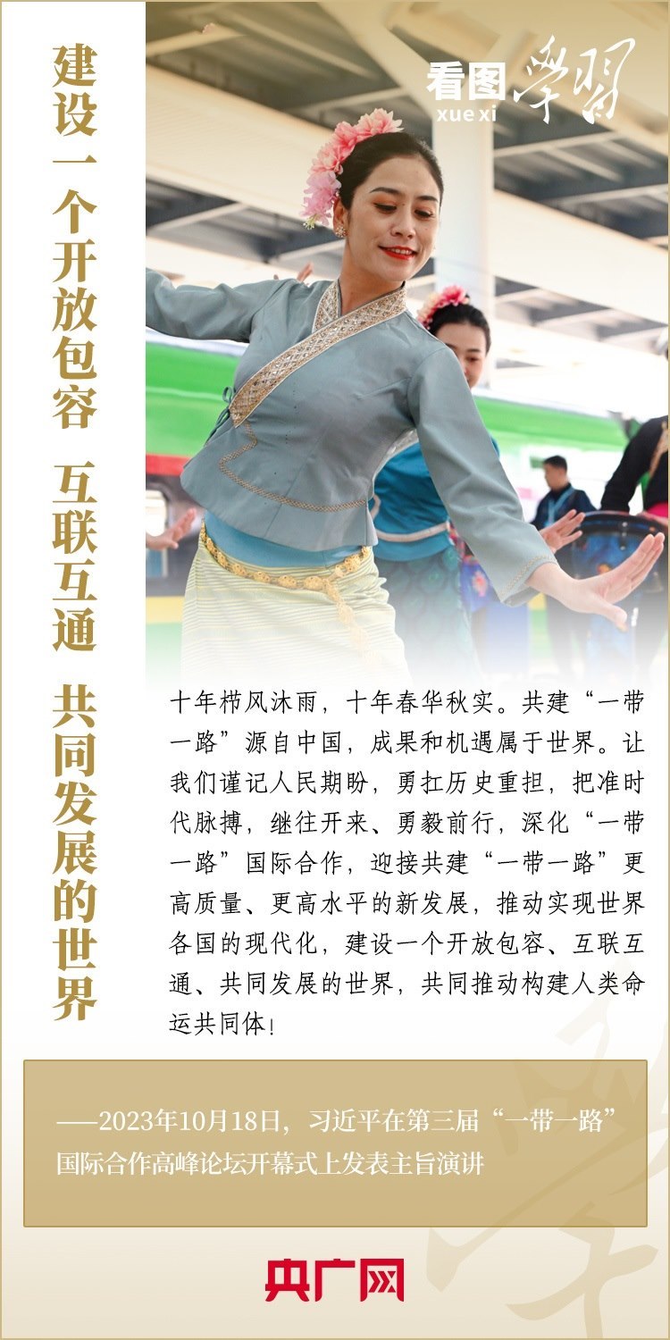 10月18日,習近平主席出席第三屆“一帶一路”國際合作高峰論壇開幕式并發(fā)表主旨演講,深刻總結(jié)共建“一帶一路”倡議提出十年來取得的發(fā)展成果和經(jīng)驗,就中國支持高質(zhì)量共建“一帶一路”提出具體行動,強調(diào)要迎接共建“一帶一路”更高質(zhì)量、更高水平的新發(fā)展,推動實現(xiàn)世界各國的現(xiàn)代化,建設一個開放包容、互聯(lián)互通、共同發(fā)展的世界,共同推動構(gòu)建人類命運共同體!一起來學習!