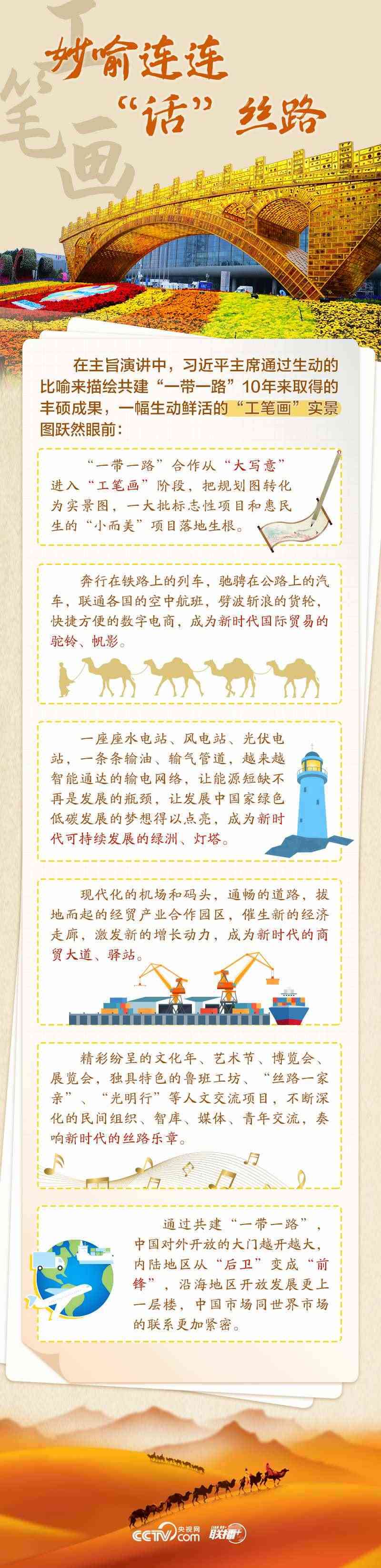 站在共建“一帶一路”倡議走過十年這個標(biāo)志性節(jié)點,這幅“工筆畫”呈現(xiàn)怎樣的實景圖?高質(zhì)量共建“一帶一路”如何再出發(fā)?央視網(wǎng)《聯(lián)播+》欄目從五個維度為您速讀習(xí)主席講話,與您一同學(xué)習(xí)。
