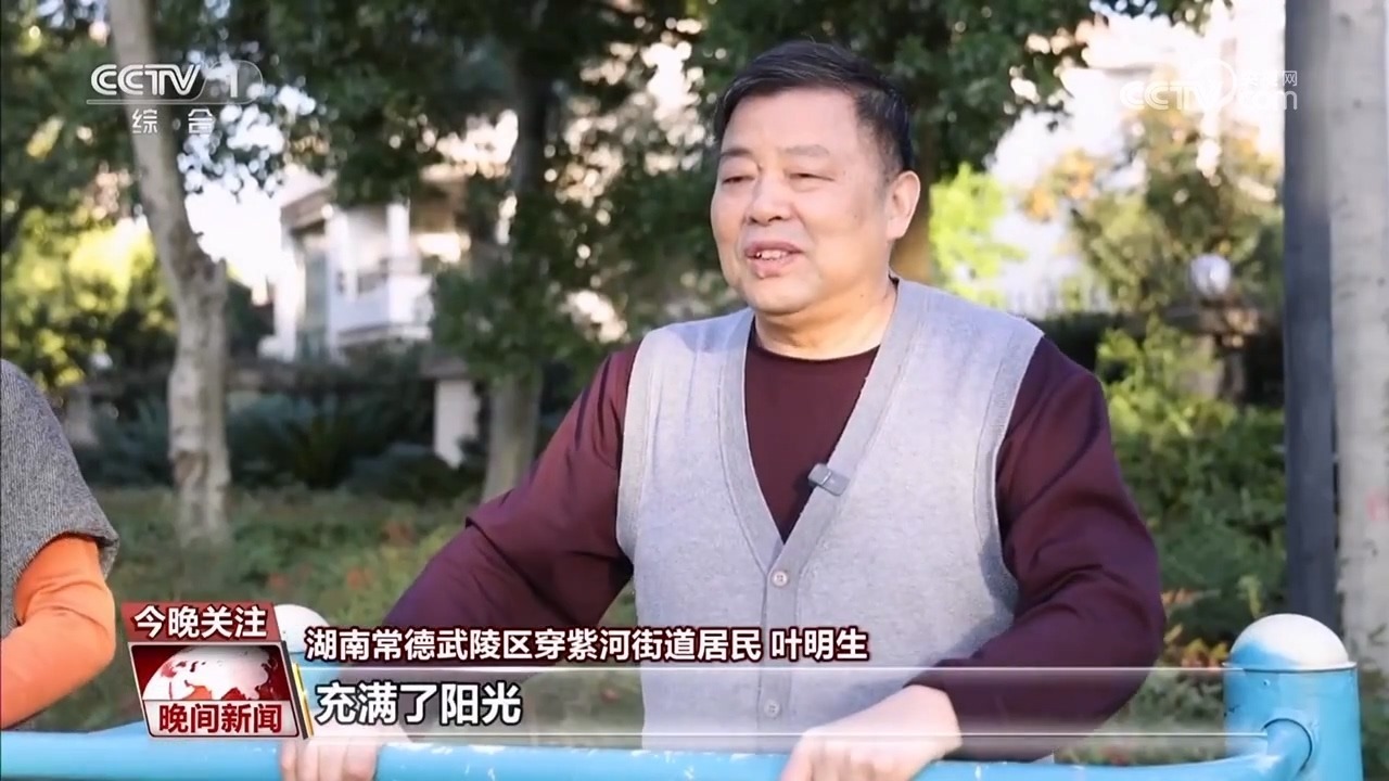 湖南常德武陵區(qū)穿紫河街道居民 葉明生:我們老年人現(xiàn)在的生活確實好過了,充滿了陽光,社區(qū)到處都有了體育器材、有運動場所、有健身場所,現(xiàn)在我們玩得多開心啊。