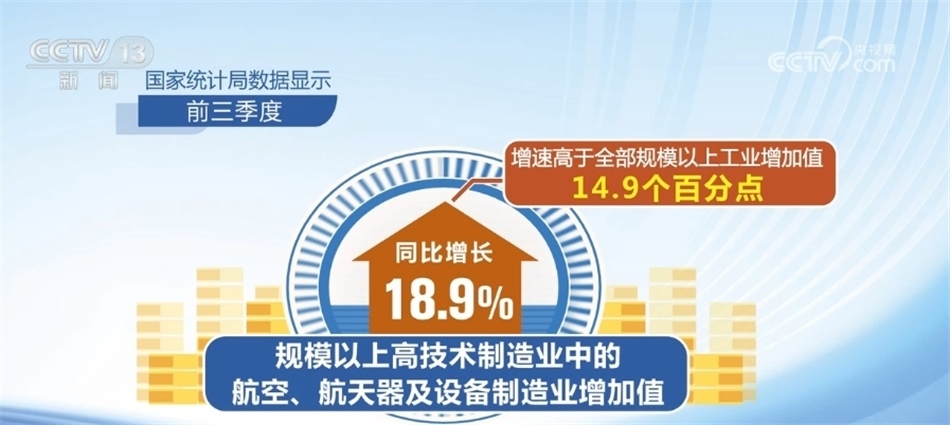 高技術(shù)產(chǎn)業(yè)投資動力強勁,新動能領(lǐng)域保持較快增長。國家統(tǒng)計局數(shù)據(jù)顯示,前三季度,高技術(shù)制造業(yè)投資和高技術(shù)服務(wù)業(yè)投資分別同比增長11.3%和11.8%,分別高于全部固定資產(chǎn)投資增速8.2和8.7個百分點,持續(xù)推動產(chǎn)業(yè)轉(zhuǎn)型升級。規(guī)模以上高技術(shù)制造業(yè)中的航空、航天器及設(shè)備制造業(yè)增加值同比增長18.9%,增速高于全部規(guī)模以上工業(yè)增加值14.9個百分點。