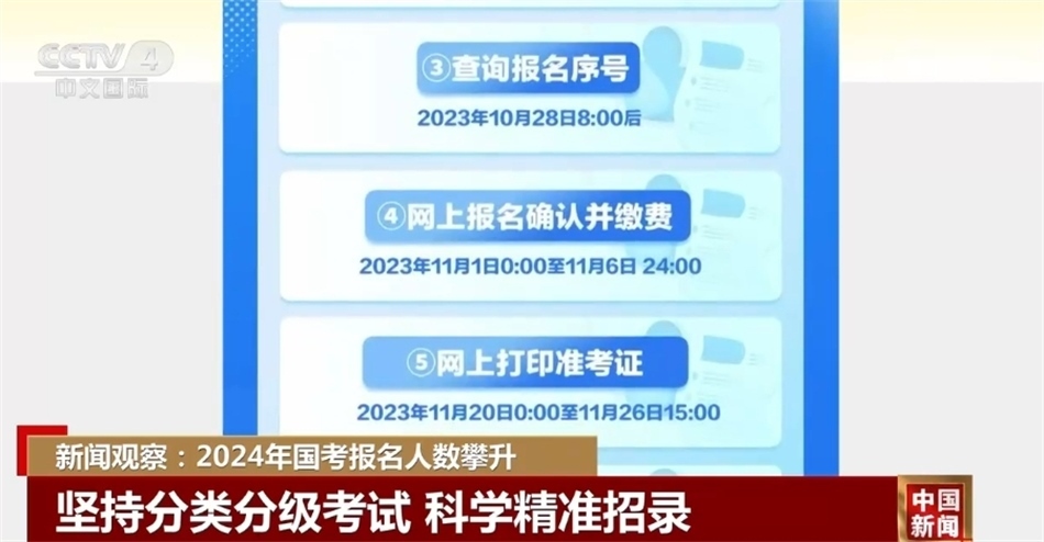 央視網(wǎng)消息:統(tǒng)計數(shù)據(jù)顯示,2024年國考報名人數(shù)逐漸攀升。截至10月22日16時,1744711人提交報名申請,比去年同期增加22萬余人,其中1390420人通過審核。目前,平均競爭比為35比1,略高于去年同期競爭水平。
