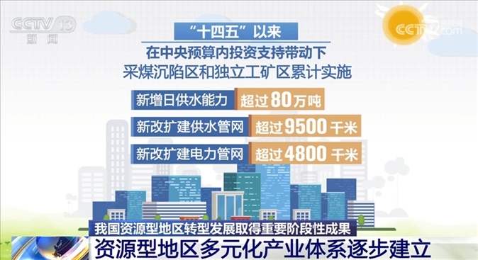 負(fù)責(zé)人表示,我國(guó)資源型地區(qū)民生福祉日益增進(jìn)?!笆奈濉币詠?,在中央預(yù)算內(nèi)投資支持帶動(dòng)下,有關(guān)采煤沉陷區(qū)和獨(dú)立工礦區(qū)累計(jì)實(shí)施地質(zhì)災(zāi)害隱患區(qū)居民避險(xiǎn)搬遷16.8萬戶、56.5萬人,改造修繕老舊住房27.8萬戶,新改擴(kuò)建道路里程超過7800公里,新增日供水能力超過80萬噸,新改擴(kuò)建供水、電力管網(wǎng)分別超過9500千米、4800千米,新增學(xué)前教育學(xué)位5.5萬個(gè)、義務(wù)教育學(xué)位18.7萬個(gè),新改擴(kuò)建醫(yī)療機(jī)構(gòu)床位2.3萬張,建設(shè)接續(xù)替代產(chǎn)業(yè)平臺(tái)227個(gè),吸納就業(yè)66.7萬人。此外,資源型地區(qū)多元化產(chǎn)業(yè)體系逐步建立,綠色發(fā)展成效顯著。