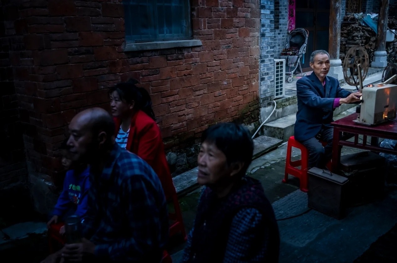 1983年,鄉(xiāng)里成立了電影放映隊(duì),曹毅成了隊(duì)長(zhǎng),還參加了電影培訓(xùn)班,扎扎實(shí)實(shí)地學(xué)了放映技術(shù)、電工等好多課程,成了專業(yè)的放映員。那時(shí)片源少,一張片子各個(gè)鄉(xiāng)排期輪流放映,讓曹毅最開(kāi)心的事,就是坐上幾個(gè)小時(shí)的公交車去縣里拿膠片。有時(shí)揣著膠片回來(lái)的路上就忍不住想樂(lè),哪回放新電影都像打仗一樣,人山人海,得防著別碰壞了放映機(jī),還得留心會(huì)有哪個(gè)村連夜來(lái)?yè)尫庞硻C(jī)?!翱傆幸蝗f(wàn)人,銀幕前后都是人,背面都有人看。在稻田里面把那稻子割完了以后,電影就在稻場(chǎng)里面放,不然地方不夠大?!笨諝庵酗h著稻谷的香味,不少人會(huì)盤腿坐在地上,扎扎實(shí)實(shí)看完一部電影。