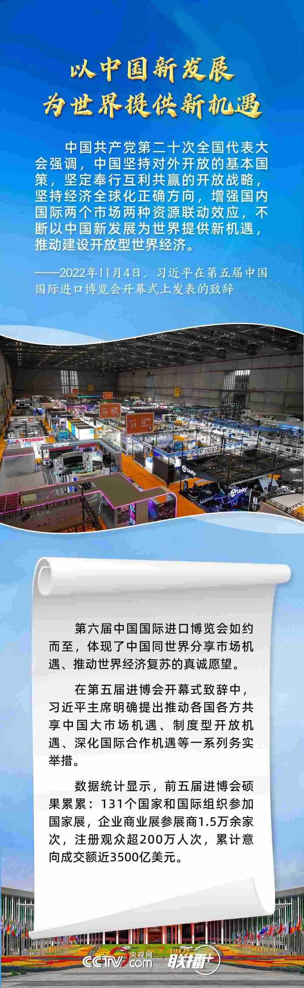 “中國擴(kuò)大高水平開放的決心不會(huì)變,同世界分享發(fā)展機(jī)遇的決心不會(huì)變,推動(dòng)經(jīng)濟(jì)全球化朝著更加開放、包容、普惠、平衡、共贏方向發(fā)展的決心不會(huì)變?!蔽迥陙恚?xí)近平主席在進(jìn)博會(huì)上宣布一系列重大開放舉措,充分彰顯了中國致力于促進(jìn)世界經(jīng)濟(jì)包容性增長,建設(shè)開放型世界經(jīng)濟(jì)的信心與決心。