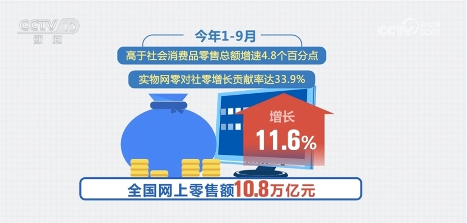 ?????? 據(jù)了解,我國(guó)零售市場(chǎng)的電商滲透率逐年走高,今年1—9月,全國(guó)網(wǎng)上零售額增長(zhǎng)11.6%,高于社會(huì)消費(fèi)品零售總額增速4.8個(gè)百分點(diǎn),實(shí)物商品網(wǎng)上零售對(duì)社會(huì)消費(fèi)品零售增長(zhǎng)貢獻(xiàn)率達(dá)33.9%。