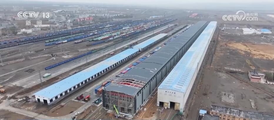 總臺記者 崔寧:在我的身后有一小一大、一舊一新兩座換裝庫,它們主要是對入境的中歐班列進(jìn)行換裝。小的這座看起來也比較舊,它建于2008年,到目前為止已經(jīng)投用了整整15年。隨著“一帶一路”倡議的不斷推進(jìn),現(xiàn)在經(jīng)阿拉山口口岸出入境的中歐班列數(shù)量已經(jīng)由最初月均3.5列增加到日均17列。所以,它的存在也已經(jīng)遠(yuǎn)遠(yuǎn)不能滿足現(xiàn)在發(fā)展的需求,也正因為如此,在它的旁邊又新建了一座大的換裝庫,它建成投用之后將取而代之成為目前亞洲最大的室內(nèi)集裝箱換裝庫。