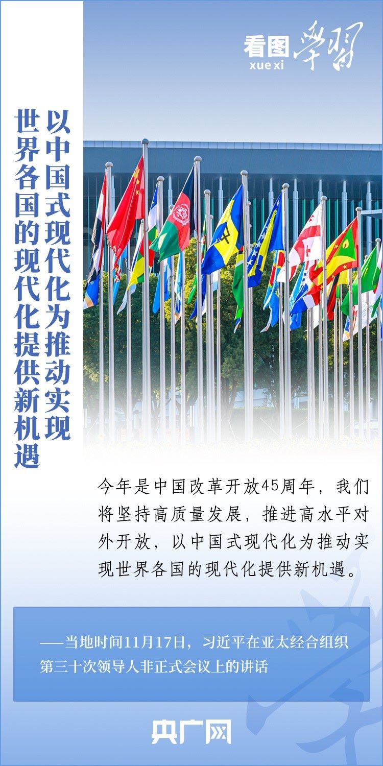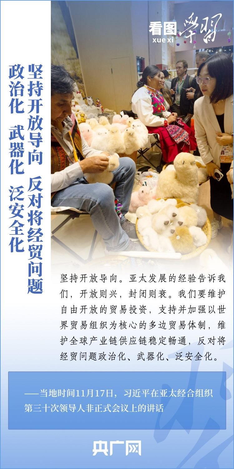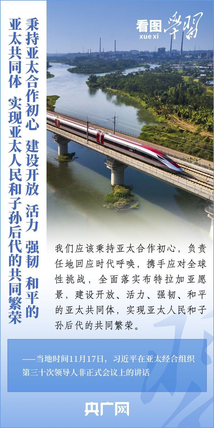 當(dāng)?shù)貢r(shí)間11月17日上午,亞太經(jīng)合組織第三十次領(lǐng)導(dǎo)人非正式會(huì)議在美國舊金山舉行。國家主席習(xí)近平出席會(huì)議并發(fā)表題為《堅(jiān)守初心 團(tuán)結(jié)合作 攜手共促亞太高質(zhì)量增長》的重要講話。習(xí)主席在講話中全面闡述了中國對深化亞太合作、促進(jìn)地區(qū)和世界經(jīng)濟(jì)增長的重要主張,以“四個(gè)堅(jiān)持”提出多項(xiàng)務(wù)實(shí)舉措,希望同各方一道努力,共同打造亞太下一個(gè)“黃金三十年”。一起來學(xué)習(xí)!