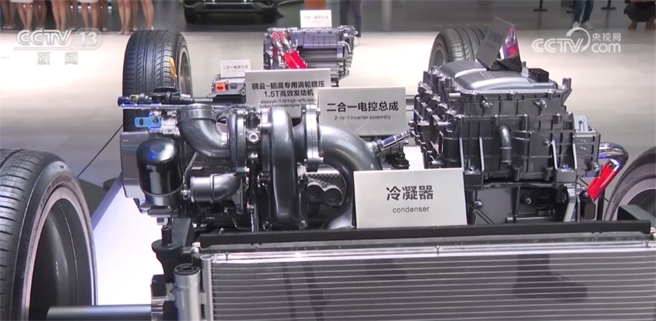 在1100多臺展車中,新能源車占比超過40%,達到469臺,其中,中國品牌展出的數(shù)量為350臺。不僅是展車的數(shù)量上占了絕大多數(shù),中國品牌在新技術上也在不斷更新迭代。眼前的這個超級電驅(qū)智能技術平臺,其最核心的部件——增程器,參展企業(yè)研發(fā)到了第三代,最高油電轉(zhuǎn)換率比第二代提高了近10%。