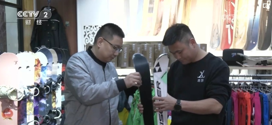記者在河北崇禮多家雪具雪服的裝備店看到,不少滑雪愛(ài)好者正在購(gòu)買(mǎi)新裝備。
