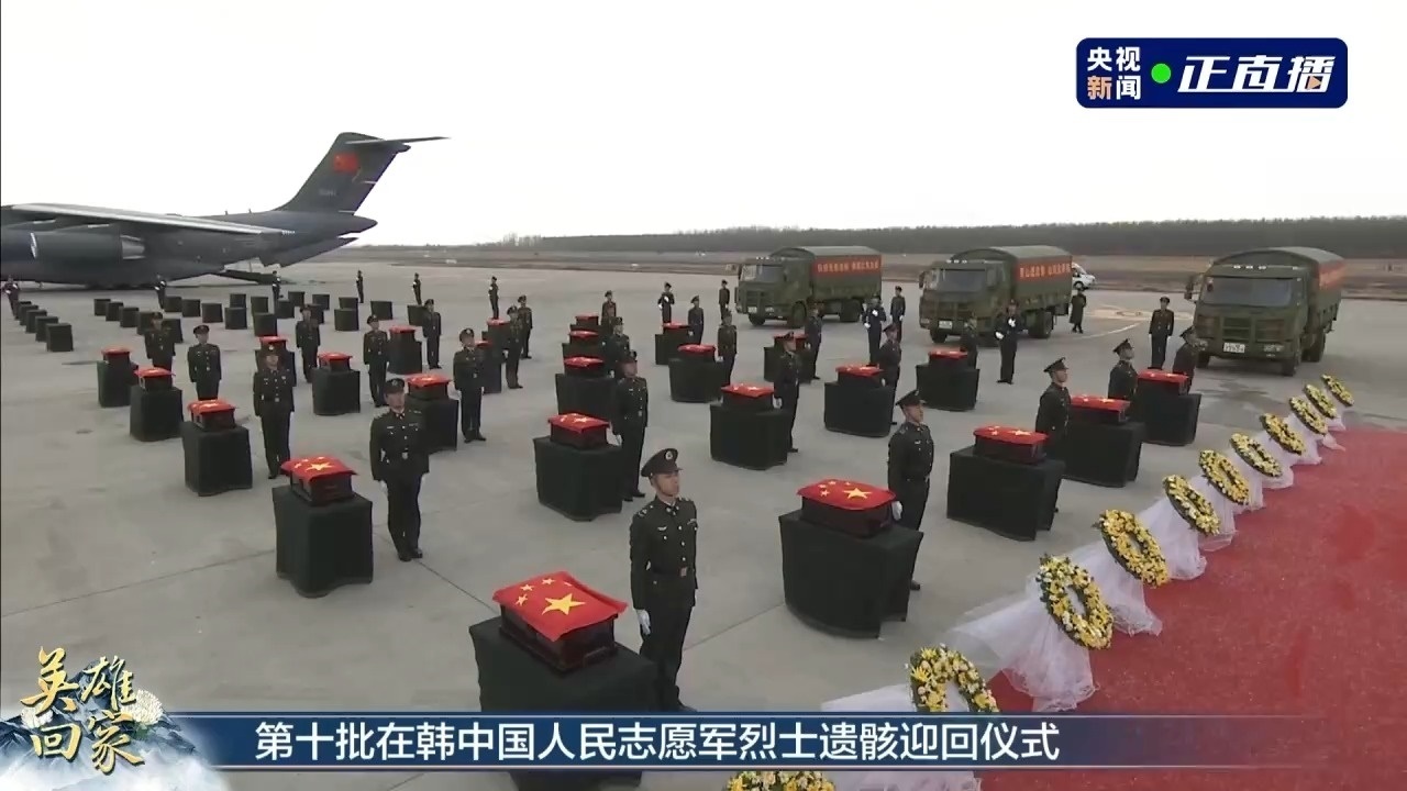 記者從退役軍人事務部了解到,今天(11月23日)上午,第十批25位在韓中國人民志愿軍烈士遺骸及遺物由空軍專機護送從韓國接回遼寧沈陽。