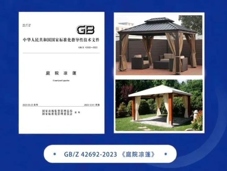 《庭院涼篷》國家標(biāo)準(zhǔn)化指導(dǎo)性技術(shù)文件自2023年12月1日起實(shí)施,該文件的制定和出臺將填補(bǔ)該類產(chǎn)品缺乏標(biāo)準(zhǔn)規(guī)范的空白,有利于庭院涼篷產(chǎn)品質(zhì)量的提升以及行業(yè)的發(fā)展,為企業(yè)出口提供保障。文件首次對庭院涼篷從產(chǎn)品分類、原材料、外觀、產(chǎn)品完整性、尺寸、性能要求和安全要求等方面進(jìn)行詳細(xì)規(guī)范。