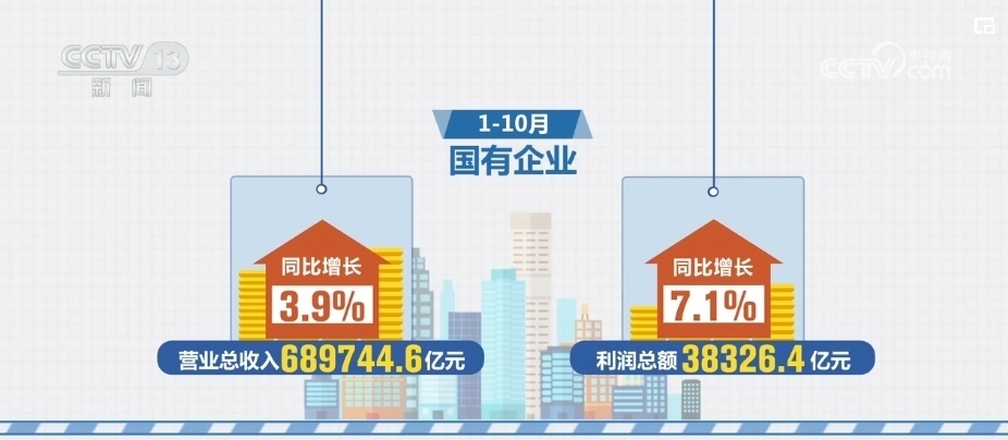 財政部11月30日發(fā)布2023年前10月全國國有企業(yè)經(jīng)濟運行情況。數(shù)據(jù)顯示,1—10月,國有企業(yè)營業(yè)總收入689744.6億元,同比增長3.9%;利潤總額38326.4億元,同比增長7.1%。國有企業(yè)生產(chǎn)經(jīng)營持續(xù)穩(wěn)定恢復(fù),疊加去年同期低基數(shù)因素影響,主要效益指標呈現(xiàn)較快增長。