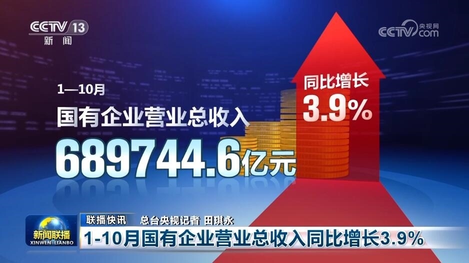 前十月國(guó)有企業(yè)營(yíng)業(yè)總收入同比增3.9%