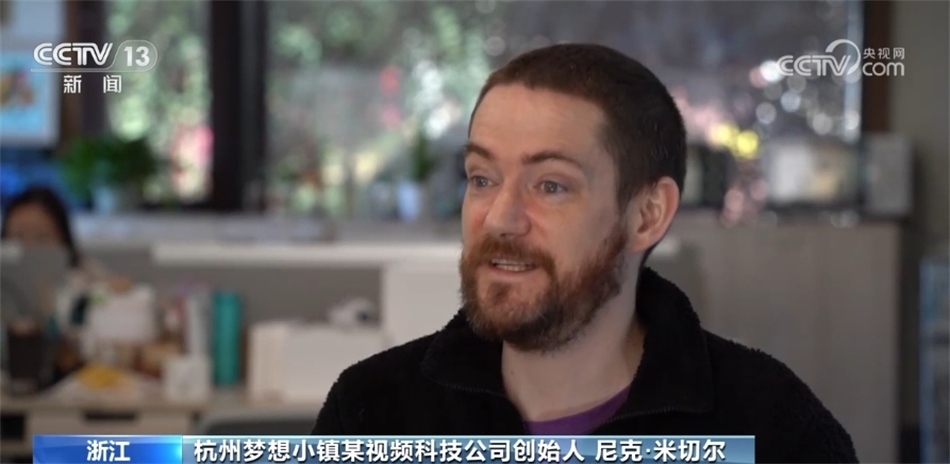 杭州夢(mèng)想小鎮(zhèn)某視頻科技公司創(chuàng)始人 尼克·米切爾:在中國(guó)把那么有趣的文化通過(guò)VR拍出來(lái),分享給全世界的人,然后將海外的(傳統(tǒng)文化)也分享給中國(guó),同時(shí)我們?cè)谡乙恍┬碌臋C(jī)會(huì),把這些人融合(交流)在一起。