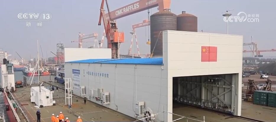 總臺(tái)央視記者 陶嘉樹(shù):我現(xiàn)在就是在捷龍三號(hào)運(yùn)載火箭的發(fā)射船上,目前捷龍三號(hào)火箭正在做發(fā)射前的一項(xiàng)起豎試驗(yàn)?;鸺瞧教芍诖线\(yùn)輸?shù)街付òl(fā)射海域的,只有到預(yù)定的海域之后,它才會(huì)起豎并完成發(fā)射。在火箭的運(yùn)輸過(guò)程中,有一個(gè)移動(dòng)的保溫裝置是一直罩在火箭上方的,以便在運(yùn)輸過(guò)程中為火箭提供良好舒適的環(huán)境。