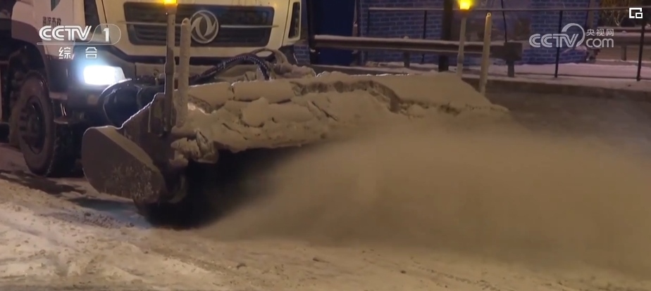 機(jī)械加人工 連夜進(jìn)行道路除冰作業(yè)