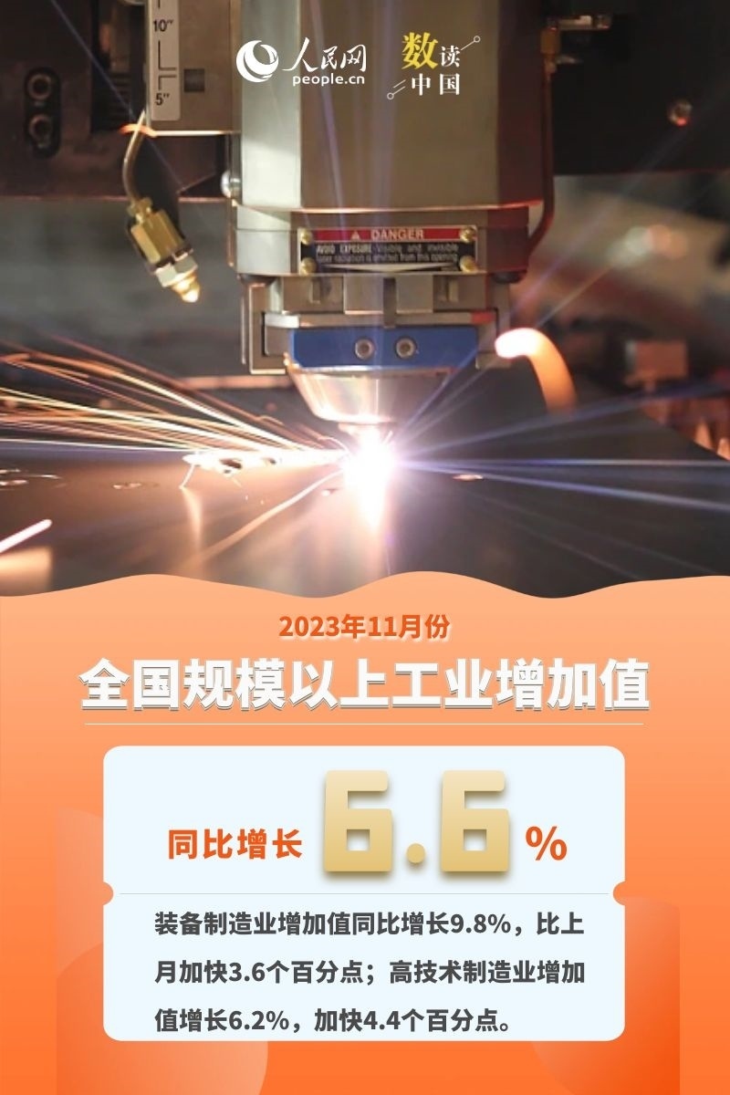 國(guó)家統(tǒng)計(jì)局15日發(fā)布數(shù)據(jù)顯示,11月份,我國(guó)工業(yè)、服務(wù)業(yè)、消費(fèi)、出口等主要生產(chǎn)需求指標(biāo)穩(wěn)中有升,就業(yè)物價(jià)總體穩(wěn)定,創(chuàng)新動(dòng)能繼續(xù)成長(zhǎng),高質(zhì)量發(fā)展扎實(shí)推進(jìn),國(guó)民經(jīng)濟(jì)總體延續(xù)回升向好的態(tài)勢(shì)。