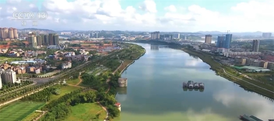 現(xiàn)在我們看到的是廣西南寧邕江河畔,沿岸植被郁郁蔥蔥,10多座濱水公園各具特色,200多處運動場分布其中。市民們在球場里、在步道上盡享運動健身帶來的樂趣,不僅有各種體育運動場所,還有健身器材及滑梯、秋千等兒童游樂設(shè)施。