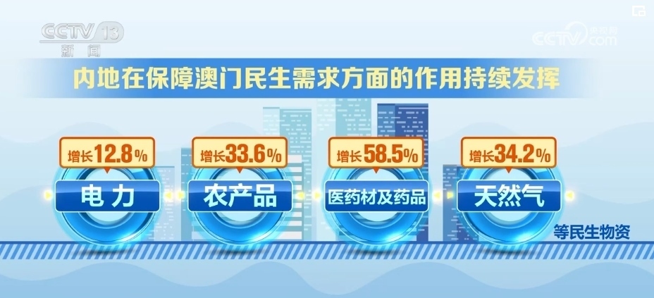 內(nèi)地對澳門出口商品結(jié)構(gòu)更加多元。2023年以來,內(nèi)地經(jīng)拱北海關(guān)對澳門地區(qū)出口機(jī)電產(chǎn)品74億元,占同期總值的37.4%,而1999年的比重不足10%。此外,電力、農(nóng)產(chǎn)品、醫(yī)藥材及藥品、天然氣等民生物資分別增長12.8%、33.6%、58.5%、34.2%,內(nèi)地在保障澳門民生需求方面的作用持續(xù)發(fā)揮。