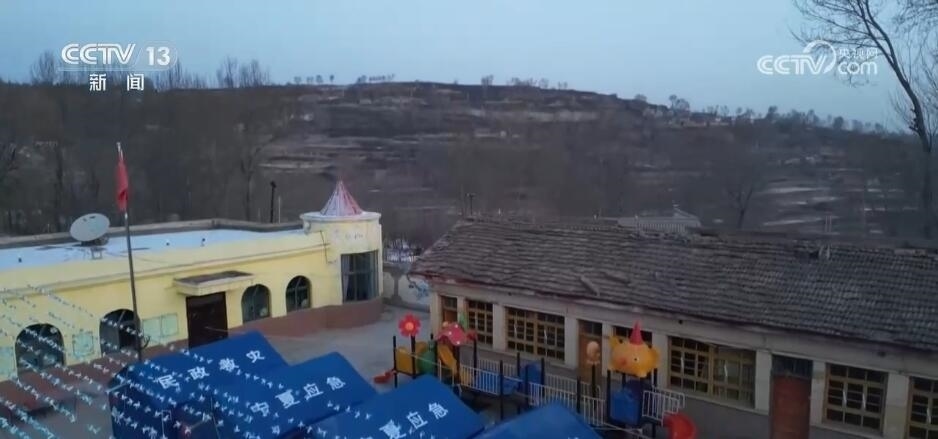 總臺記者 馬麗:我現(xiàn)在是在積石山縣前嶺小學(xué)附屬幼兒園。目前,這里也是前嶺村的一個集中安置點。地震發(fā)生后,這里的主體校舍沒有明顯受損,并且校內(nèi)廣場有大面積的空地,所以被作為了臨時安置點,來安置附近的40余名村民。其中,有近30名是小學(xué)生和幼兒園的小朋友。他們有些是村民自己的孩子,有些是附近親戚家的孩子??紤]到這里的環(huán)境更加穩(wěn)定和保暖,孩子們也被聚集到了這里?,F(xiàn)在,正是早起的時間,在安置點也升起了裊裊炊煙,陽光從遠(yuǎn)處照了過來。