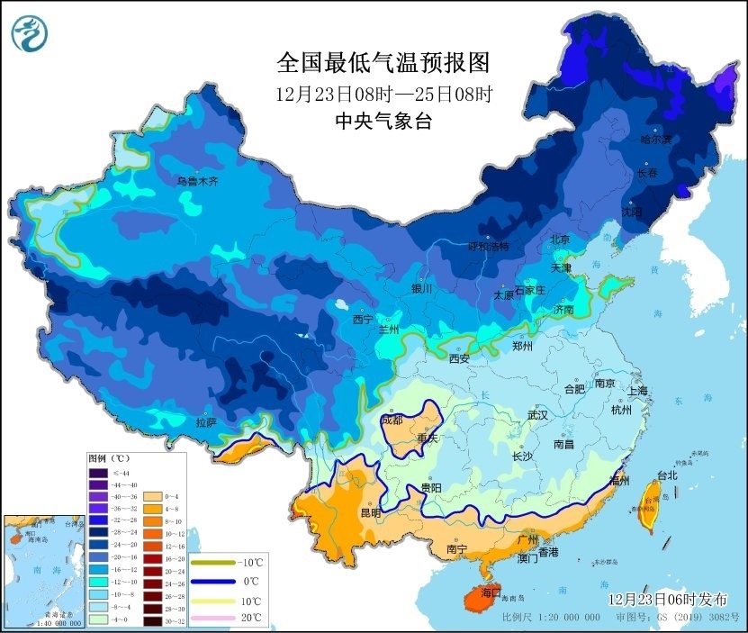 央視網(wǎng)消息:中央氣象臺12月23日06時發(fā)布低溫藍(lán)色預(yù)警:預(yù)計(jì),12月23日08時至25日08時,內(nèi)蒙古河套地區(qū)、陜西北部、華北西部和中南部、東北地區(qū)南部、黃淮及其以南大部地區(qū)日最低氣溫或平均氣溫較歷史同期偏低5℃以上,其中,內(nèi)蒙古河套地區(qū)、遼寧北部、河北中南部、江南大部、華南北部等地的部分地區(qū)偏低7℃以上,最低氣溫0℃線將位于貴州西南部至華南北部一帶。
